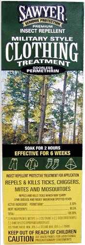 The EPA has recently granted Sawyer® registration for a NEW Military Style Insect Repellent treatment system for clothing. Similar to the U.S. Military system, with consumer friendly directions; simply soak your clothes or bed net in a permethrin solution for 2 hours, hang dry and stay protected through 6 launderings no guess work! Why spend $70 - $80 dollars on a pre-treated garment when you can treat your favorite one for less than $10?Customer Review: Sawyers Clothing Treatment